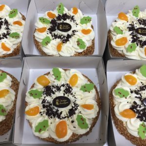 Op het moment dat je je online gebakbestelling plaatst, gaat deze bestelling rechtstreeks naar onze ambachtelijke bakkerij in Dalen. Afhankelijk van de afhaaldatum die je hebt gekozen gaat de banketbakker in de nacht aan de slag om jouw gebak dagvers te bereiden. Zo weten we zeker dat jouw gebak altijd uit verse ingrediënten en de hoogste kwaliteit bestaat. Als jouw taart bereid is, wordt deze ’s ochtends vroeg naar één van de gekozen afhaalpunten gebracht. Nadat de winkel is geopend, kun jij je bestelling ophalen.