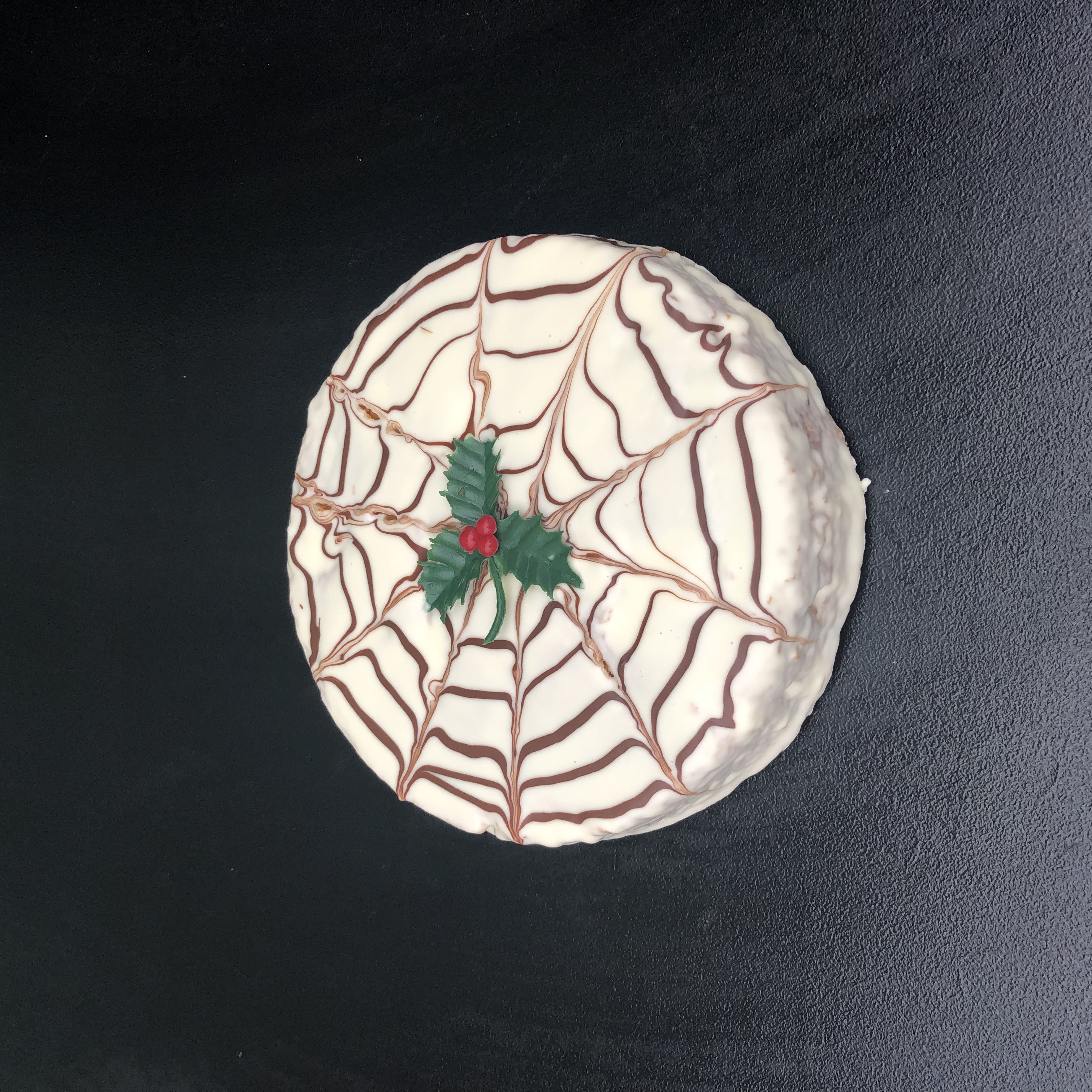 Panettone cake is een Italiaanse lekkernij, gevuld met rozijnen en afgewerkt met fondant en chocolade.