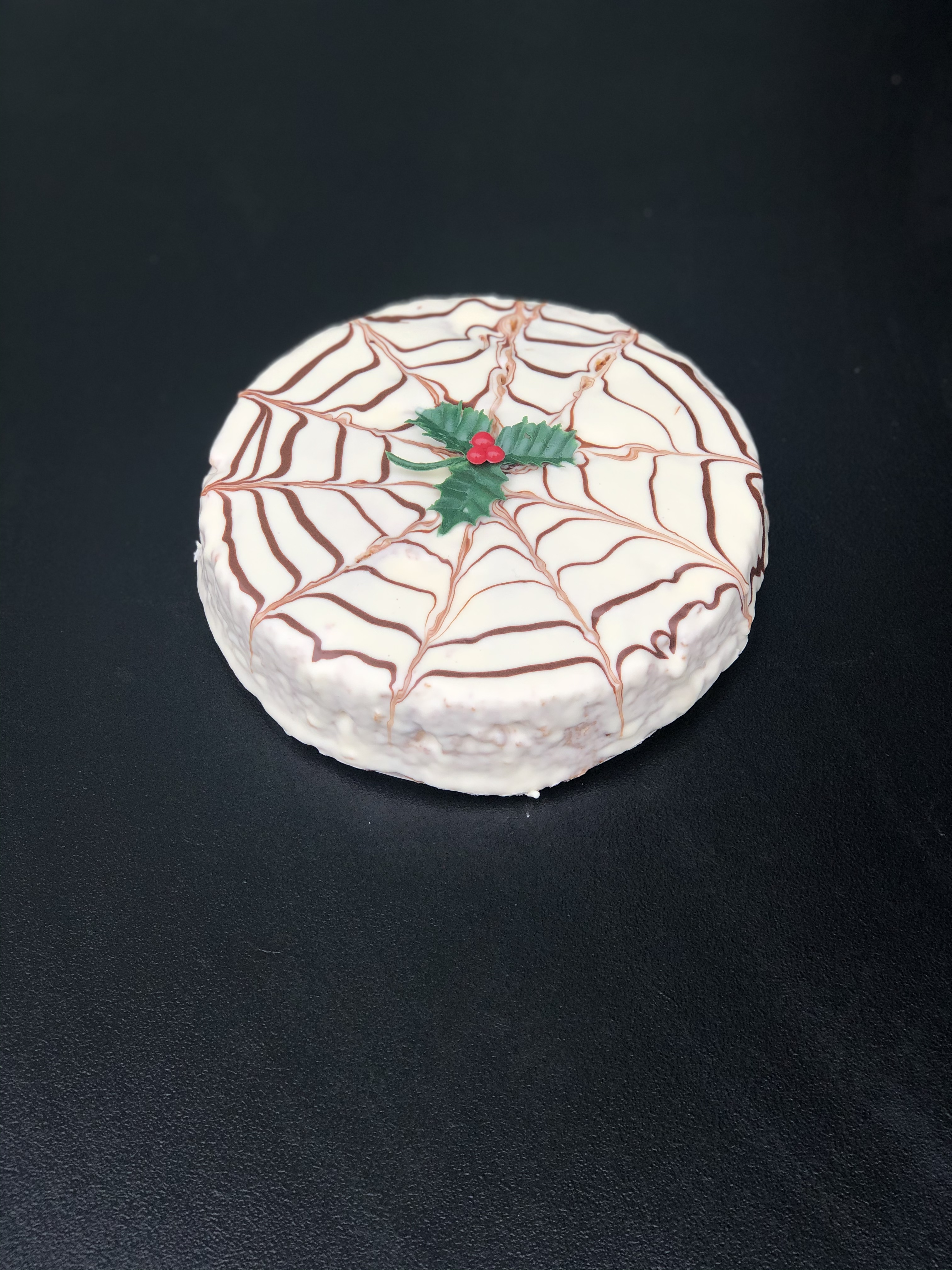 Panettone cake is een Italiaanse lekkernij, gevuld met rozijnen en afgewerkt met fondant en chocolade.